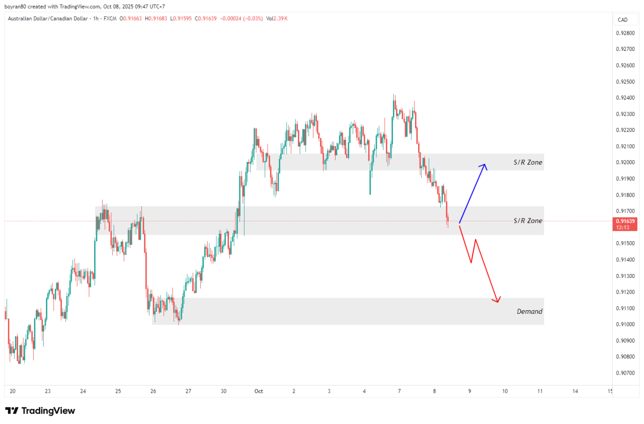 Jika terjadi rejection dari area supply disertai munculnya pola candlestick reversal, maka harga berpotensi turun menuju demand zone 3402.78 – 3383.36. Penurunan lebih lanjut dapat terjadi jika support tersebut tidak mampu menahan tekanan jual.
