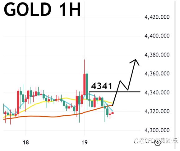 黄金一小时图, MA5死叉MA20,价格处于MA60附近震荡,创波多高后,随即回吐涨幅,回调至原先震荡区间内,目前测试MA60短撑位,激进者可布局多单进场。
