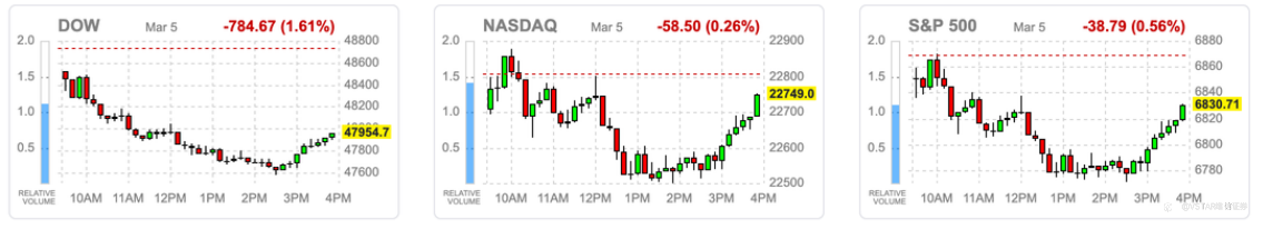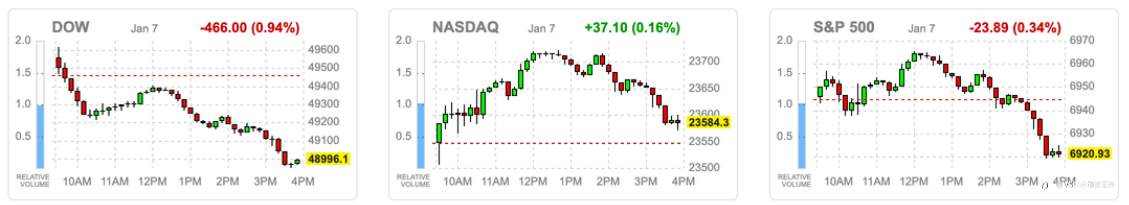 盘中虽有低接买盘支撑,但随着降息预期下降、AI资本开支扩大引发获利疑虑,市场情绪整体转为谨慎。标普500指数收于全日低点,结束连三日涨势。