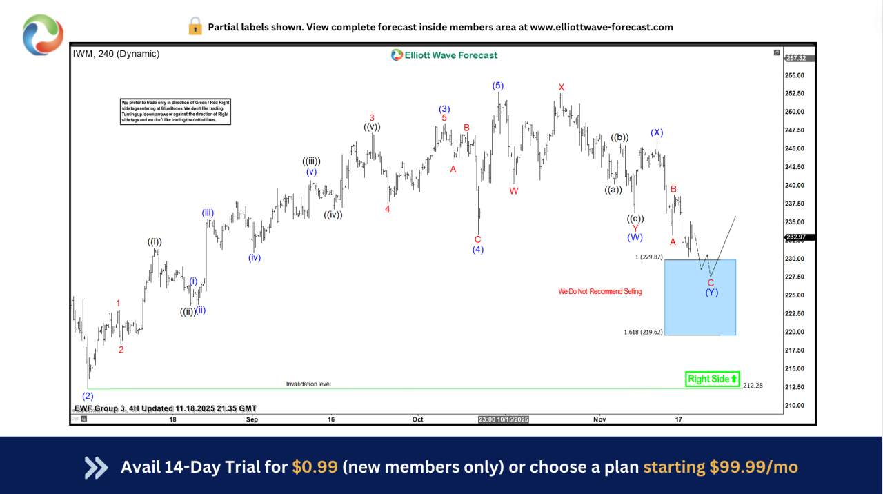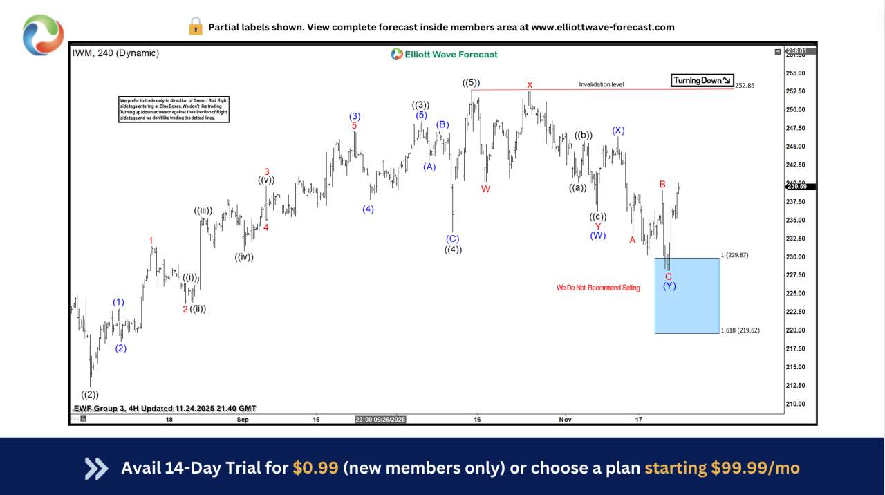 IWM Latest 4-Hour Elliott Wave Chart From 11.24.2025 Update