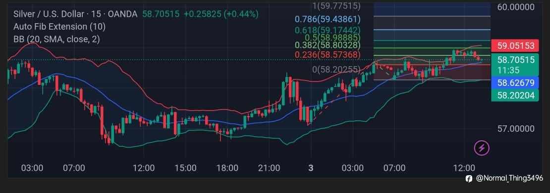 Silver is trading around 61.90, maintaining bullish momentum as long as it holds above 61.20. With resistance building at 62.40, 63.10, and 63.85 — and major upside potential toward 65.00 — the metal is setting up for a decisive move.