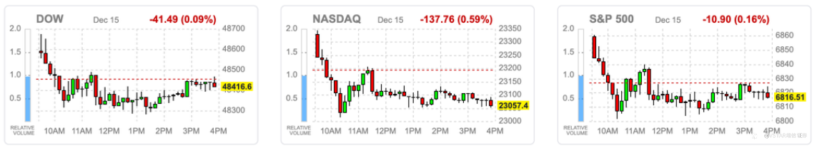 板块层面呈现典型的结构性分化。信息科技板块相对占优,权值股与部分软件股企稳,为指数提供一定支撑;半导体板块内部明显分化,英伟达、AMD、博通小幅收高,而美光、高通、应用材料回落,显示市场对 AI 资本开支节奏的预期正在从“线性扩张”转向“效率与回报”审视。软件板块中,微软、Palantir、甲骨文表现相对稳健,更多体现防守型科技特征。