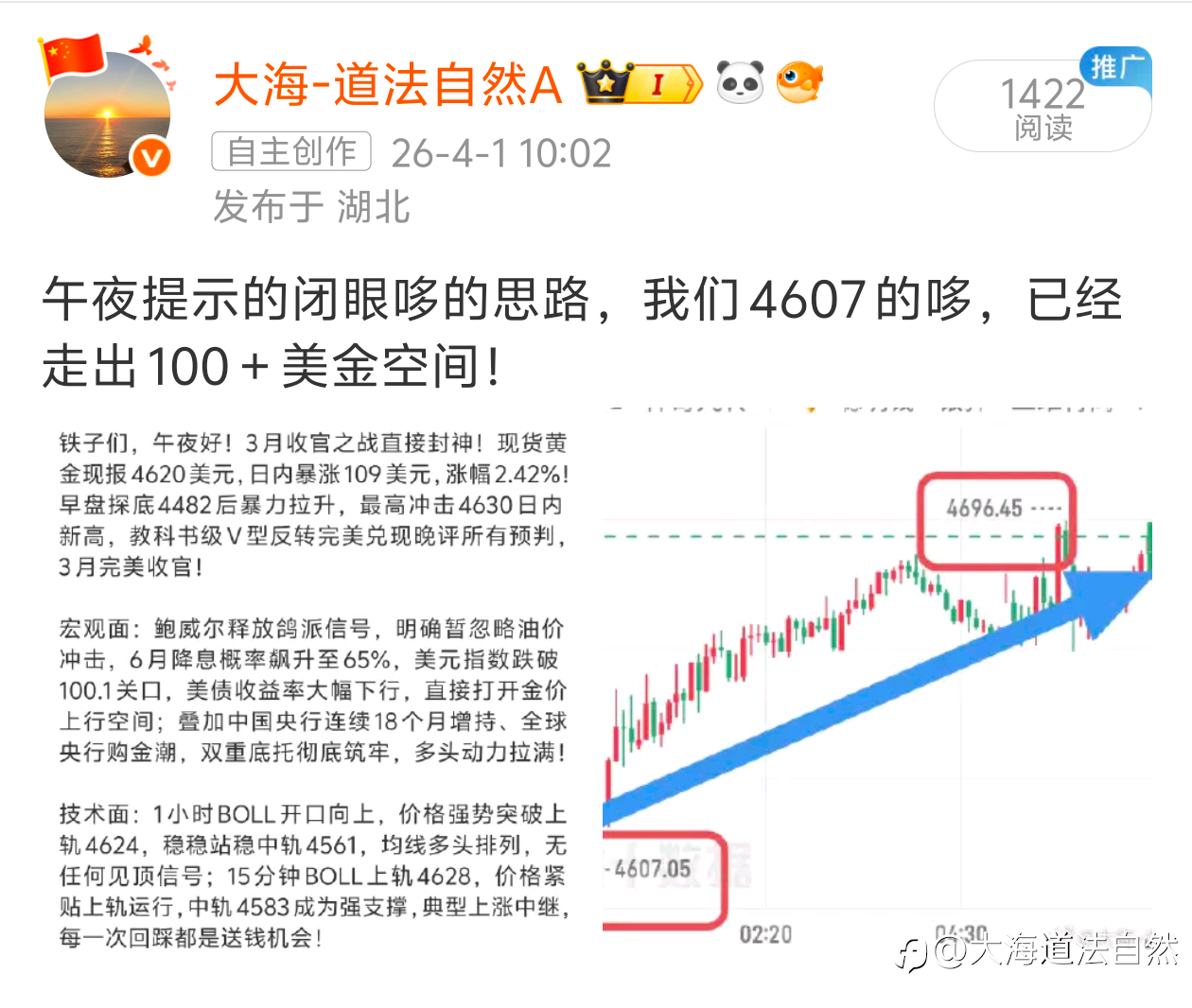 大海道法自然:黄金晚评 | 4308支撑企稳后震荡修复,均线黏合待方向选择