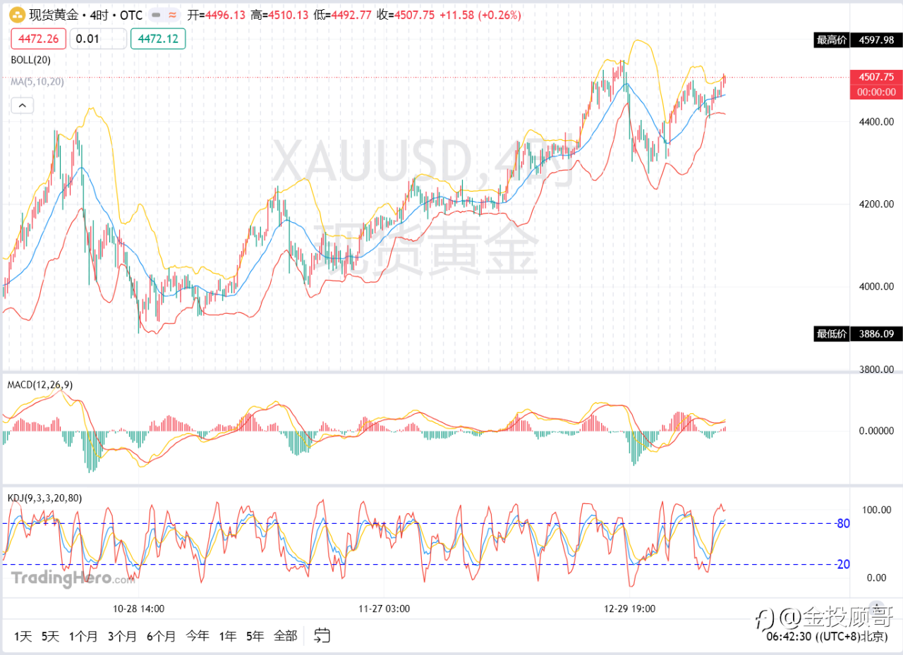 午后黄金涨至高位4420美元/盎司的高位后小幅回踩震荡,最低回踩至4406美元/盎司,受4400美元/盎司整数关口支撑,晚间行情在读延续上行,现报4415美元/盎司
