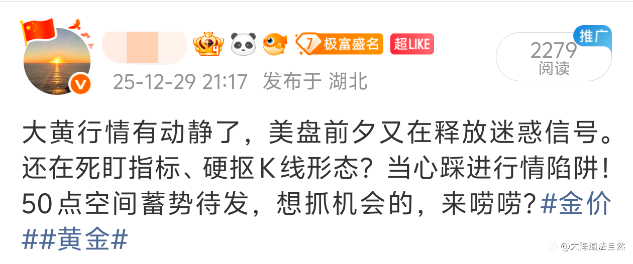 大海道法自然:黄金早评 | 圣诞节后谨慎看多,紧盯阻力与宏观信号