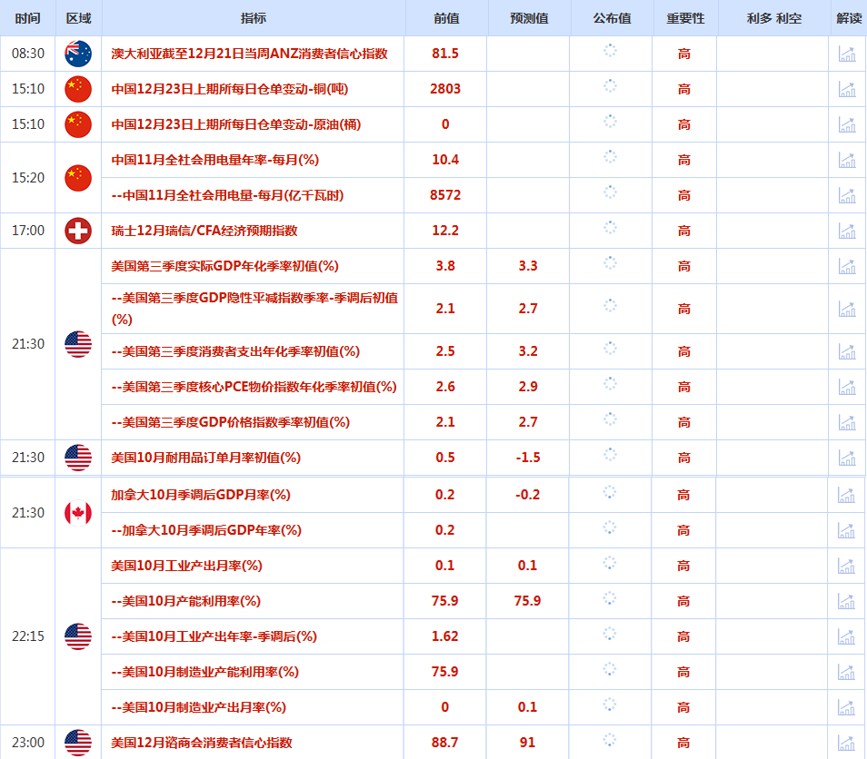 前日公布数据与消息: