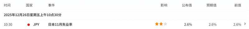今早公布的日本 11 月失业率维持在 2.6%,已连续四个月稳定,显示劳动市场稳健但未超出市场预期。同时,东京 12 月核心 CPI 低于预期,缓解了市场对日银激进升息的担忧,也减轻了债券收益率上行压力,有利于成长股与出口商表现。受此影响,日经 225 今日开盘上涨近 1%,逼近 51,000 点,成为盘面最亮眼的股指。