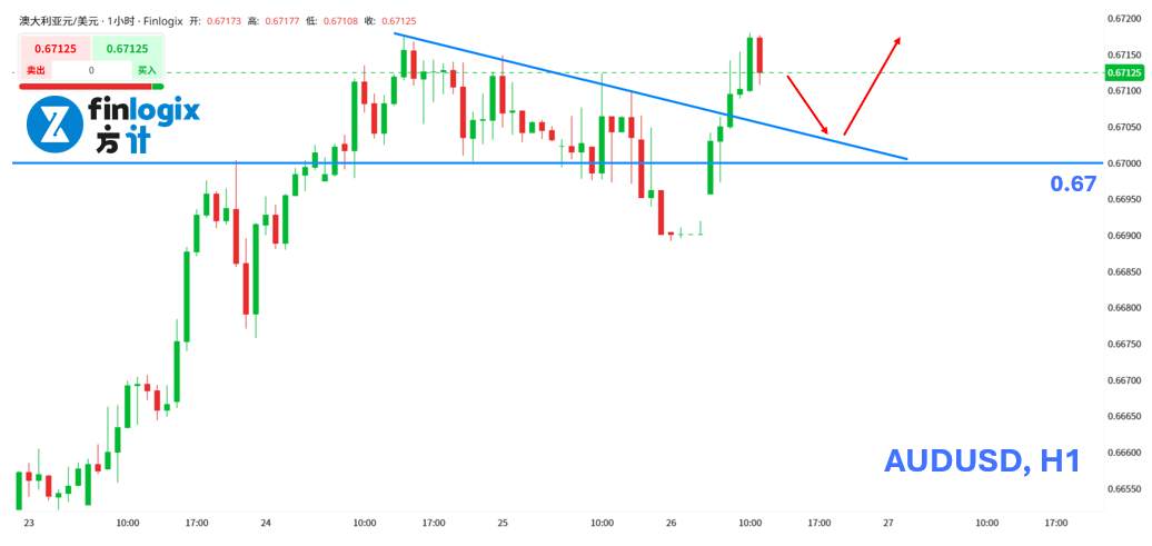 技术面:澳美货币对今日开盘就站上0.67阻力,日内保持偏多操作,短线留意0.67~0.671止跌或有做多机会。