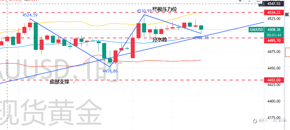 短期来看,4300美元是关键支撑位,跌破或下探4200美元;压力位先看4350美元,第二压力位4400美元,1小时级别空头趋势明确,风险偏好走低。