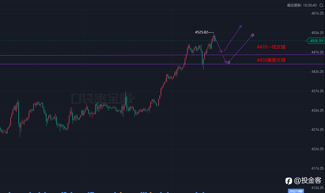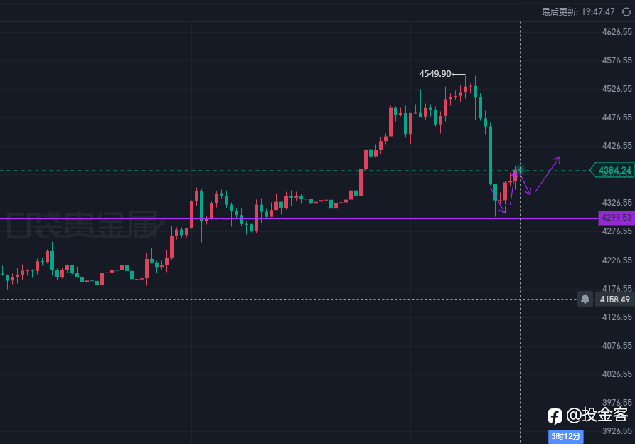 当价格反弹至4350-4355美元区间时,可轻仓布局空单,止损设置在4360美元上方,目标先看4320-4300美元,短线操作见好就收,切勿恋战;
