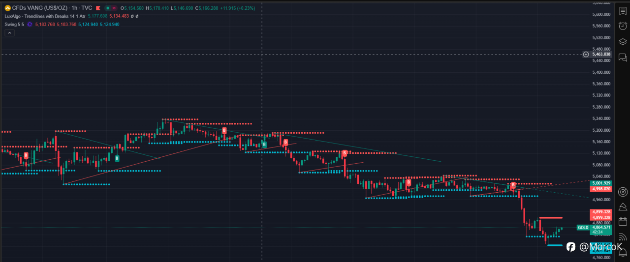 - Điểm vào: Buy limit quanh 4,780-4,800 hoặc market buy trên 4,850.