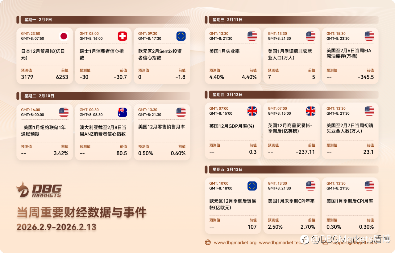 市场叙事正果断地从 “美国例外主义” 再次转向 “劳动力市场焦虑”。美元的破位与黄金站稳 $5,000 上方,均表明投资者在周中非农和 CPI 这两颗 “数据炸弹” 引爆前正积极寻求避险。