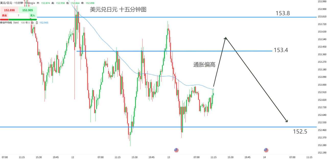 日内交易策略:(强弱趋势)153.4-153.8高位偏空