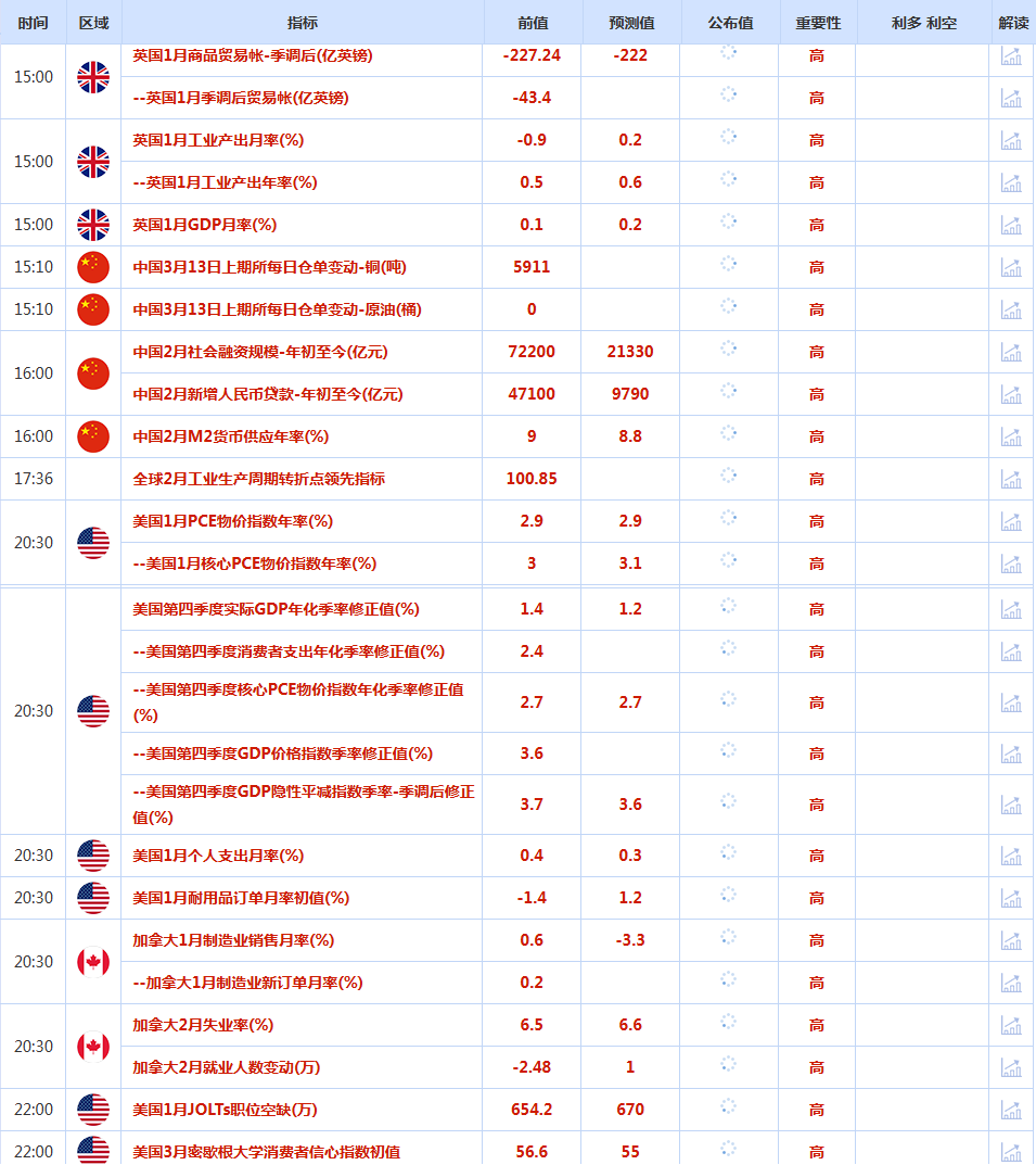 前日公布数据与消息: