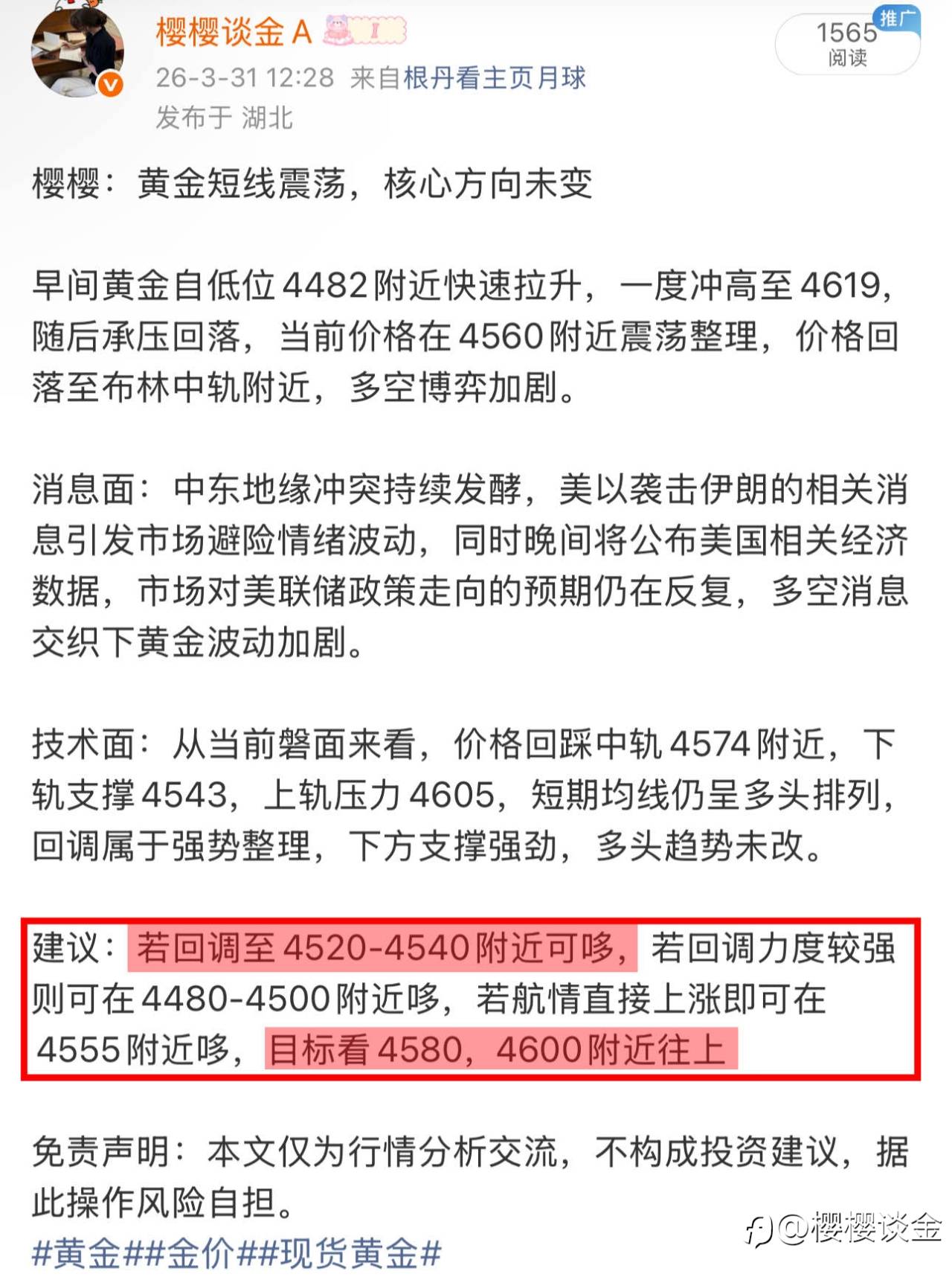 消息面:中东地缘冲突持续发酵,美以袭击伊朗目标加剧区域紧张,避险情绪反复为黄金提供支撑;美国通胀与就业数据分化,美联储政策预期摇摆,官员讲话偏谨慎,多空消息交织令行情陷入区间震荡,早间避险情绪进一步推升金价。