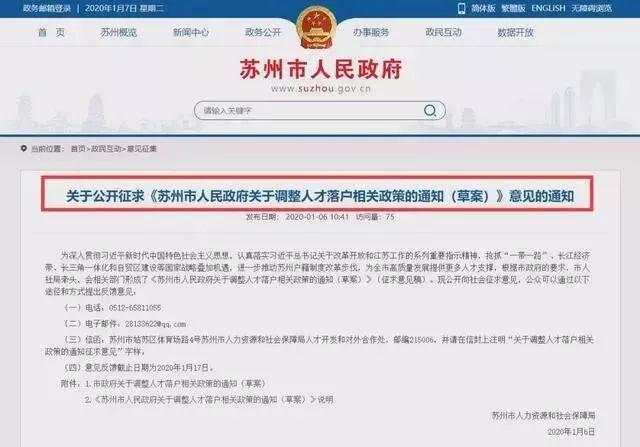 因为就在2020年1月7日,苏州发布了一份关于人才落户相关政策草案,草案称:“落户政策正在征求意见阶段,最终人才落户政策将在2020年上半年出台”。