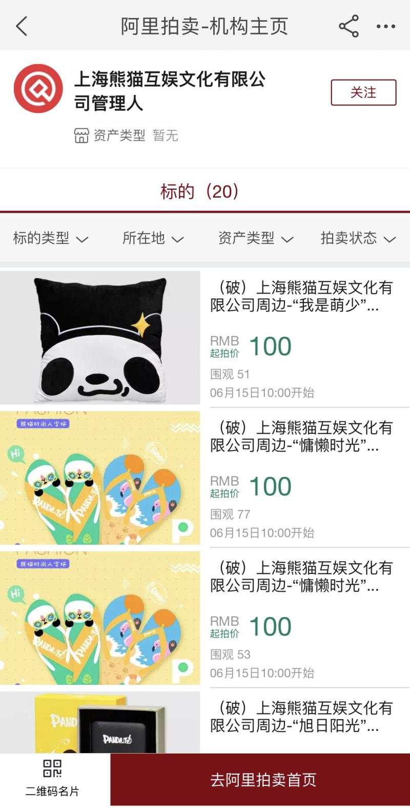 6月3日,熊猫互娱在阿里拍卖上线了一批福袋等拍品,起拍价51元起,将于6月15日正式拍卖。据悉,此次拍卖所得款项将用于公司破产清算。