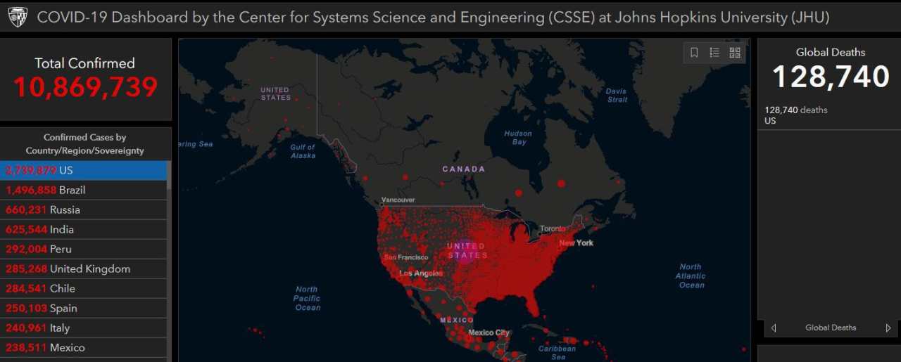 根据最新数据统计,全球新冠肺炎累计确诊病例数突破788万例。目前全球有8个国家累计确诊数超过20万,除美国外,还有巴西、俄罗斯、印度、英国、西班牙、意大利和秘鲁。美国累计确诊病例已经超过209万例。