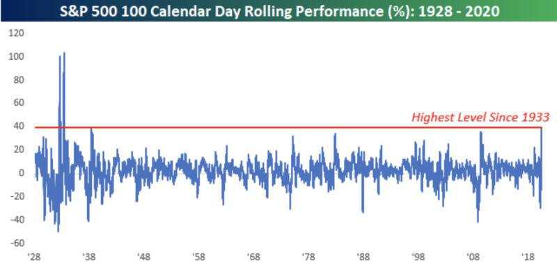 事实上,这可能是史上走势最动荡的六个月之一。MSCI明晟全球指数在2月20日至3月23日暴跌35%,创下大萧条以来最具破坏性的跌势,但如今已涨至距2月所创纪录高位仅差不到10%,二季度美股有望创下1998年以来最佳季度表现。