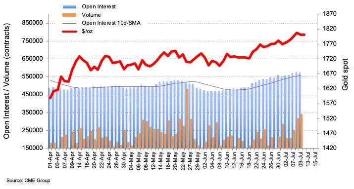 Following fresh 9-year highs beyond the $1,800 mark, Thursday’s negative price action was amidst diminishing open interest, which supports the idea that extra pullbacks should be shallow. That said, the corrective downside in Gold could extend to the July lows around $1,760 per ounce.