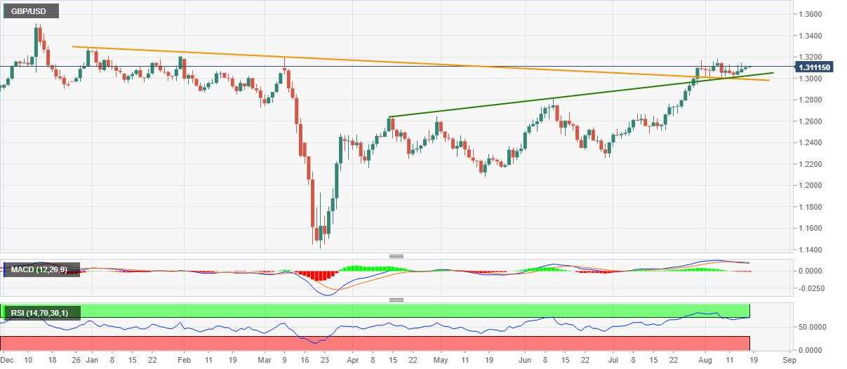 - Bearish MACD, sustained break of a four-month-old ascending trend line keeps the sellers hopeful.