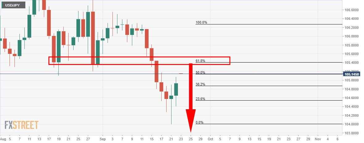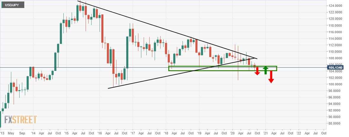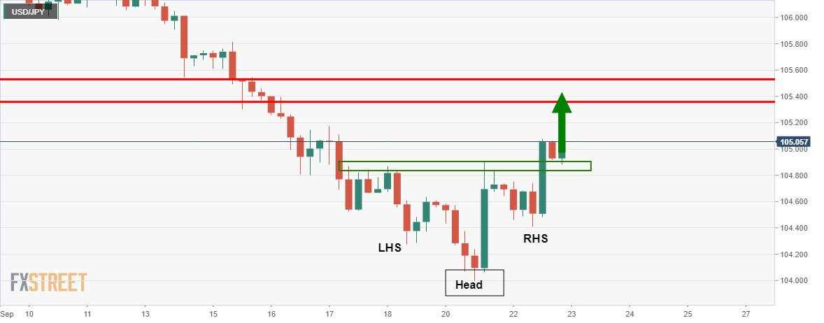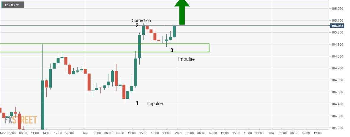 - USD/JPY breaking the 105 figure and bulls look to ride to 105.50.