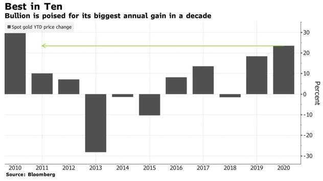 新冠疫情大流行、随后的经济活动放缓,以及全球各国政府债务驱动的刺激方案,都是推动今年金价上涨的因素。