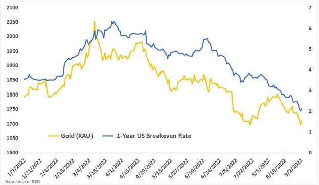 A lack of rise in US Treasury yields coupled with increasing inflation pressures throughout May, as measured by the 5- and 10-year breakeven rates, has dragged US real yields lower. Even with the nascent taper efforts starting to become more public, the Federal Reserve has been signaling quite strongly that it still believes the recent rise in inflation pressures is but only transitory.