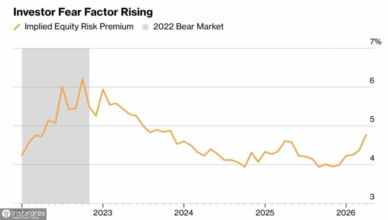 Mungkin pasar memang membutuhkan waktu untuk menyadari potensi skenario ala tahun 1970-an — sebuah guncangan harga minyak yang memicu inflasi, sementara tekanan politik menahan The Fed untuk melakukan pengetatan, sehingga menghasilkan resesi ganda. Risk premium pada ekuitas dibandingkan obligasi telah melonjak ke level tertinggi dalam dua tahun, mencerminkan kekhawatiran tersebut.