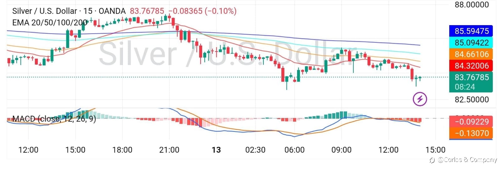 Silver Market Update Silver is currently trading near $83.76, moving in a sideways to slightly bearish consolidation phase. This type of price action often indicates that the market is building liquidity before the next significant move. Key Technical Levels Resistance • $84.50 • $86.20 • $88.00 Sup