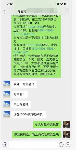 早上1498-1500多单策略布局,止损1495下方,目标看1504-1505-1507-1509-1511多单策略布局,可以顺利进场,现在1508了,合作用户,早上在1451.23进多多单,先差0.5个点没有出,我晚上回来后,让他在1505.30出局了,不出局现在已经止盈1507一线了,早上我就让他不要加仓,止损1497,止盈1507的;