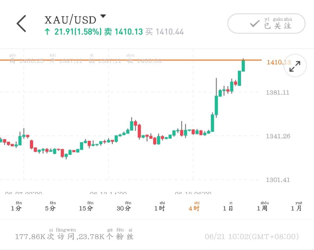 $XAU/USD$ 1410 风险提示:本文所述仅代表作者个人观点,不代表 Followme 的官方立场。Followme 不对内容的准确性、完整性或可靠性作出任何保证,对于基于该内容所采取的任何行为,不承担任何责任,除非另有书面明确说明。