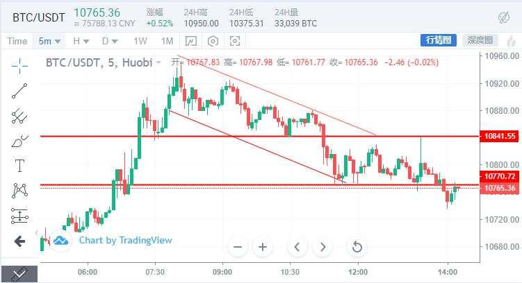BTC走势持续调整在9900一线站稳后,今日凌晨形成上攻姿态,突破了当前高点,最高涨到了10480位置,持续的上攻也让走势显得有些疲态,目前走势在10350附近调整;