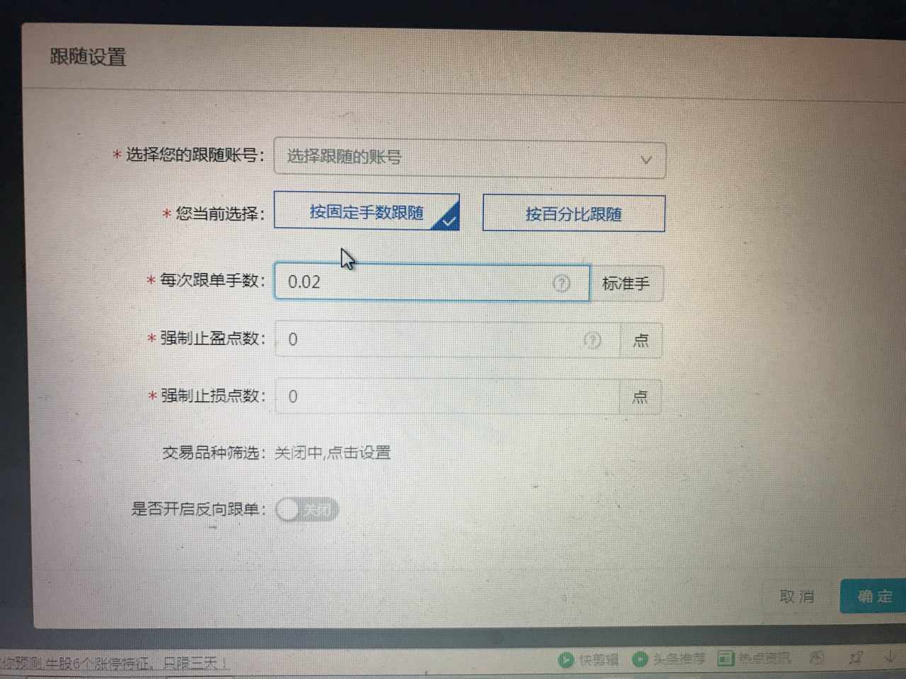关于跟单设置,我建议@小秘书 可以有止盈点数,止损点数,这样那怕交易员没设止损,但是自己有设置,这样也不会出现大亏或爆仓。看网站是否可行?@Marco Chu #爆仓是种什么感受?# #交易心得#