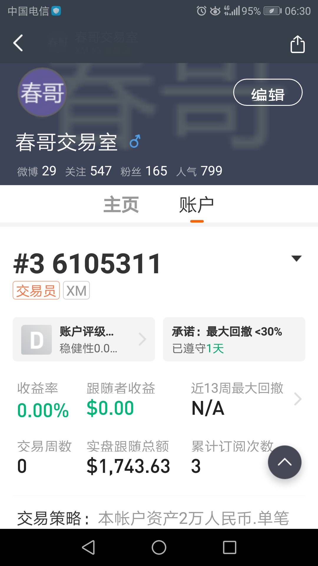 一大早获利166美金,给力。 风险提示:本文所述仅代表作者个人观点,不代表 Followme 的官方立场。Followme 不对内容的准确性、完整性或可靠性作出任何保证,对于基于该内容所采取的任何行为,不承担任何责任,除非另有书面明确说明。