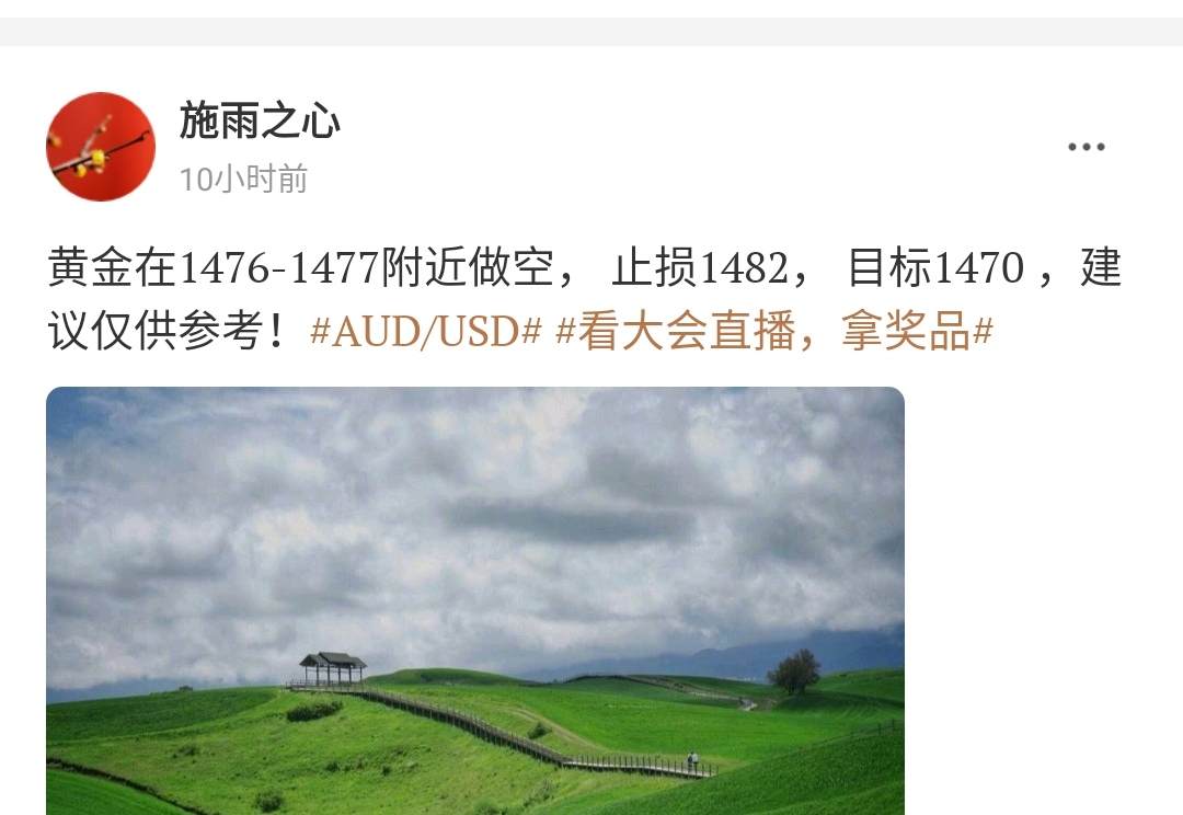11.4 黄金操作策略: 建议在1512-1514附近做空,目标看1505-1503。止损5美金,建议仅供参考。本周关注欧洲央行行长拉加德就任后的第一次演讲,以及芝加哥联储主席埃文斯和纽约联储主席威廉姆斯的讲话。黄金短线4小时布林线轨道开始开口,目前,目前MACD金叉,KDJ金叉,金价有望再次试探布林线上轨1517附近阻力,如果黄金能突破1517位置,则能进一步继续上看1560附近!如果再次遇阻,黄金则继续位置1480-1520区域内的盘整震荡。布林线中轨支撑在1497.4附近,若失守该位置,则增加短线看空信号;#AUD/USD# #社区小秘书# #Followme活动# #交易员怎么选?#