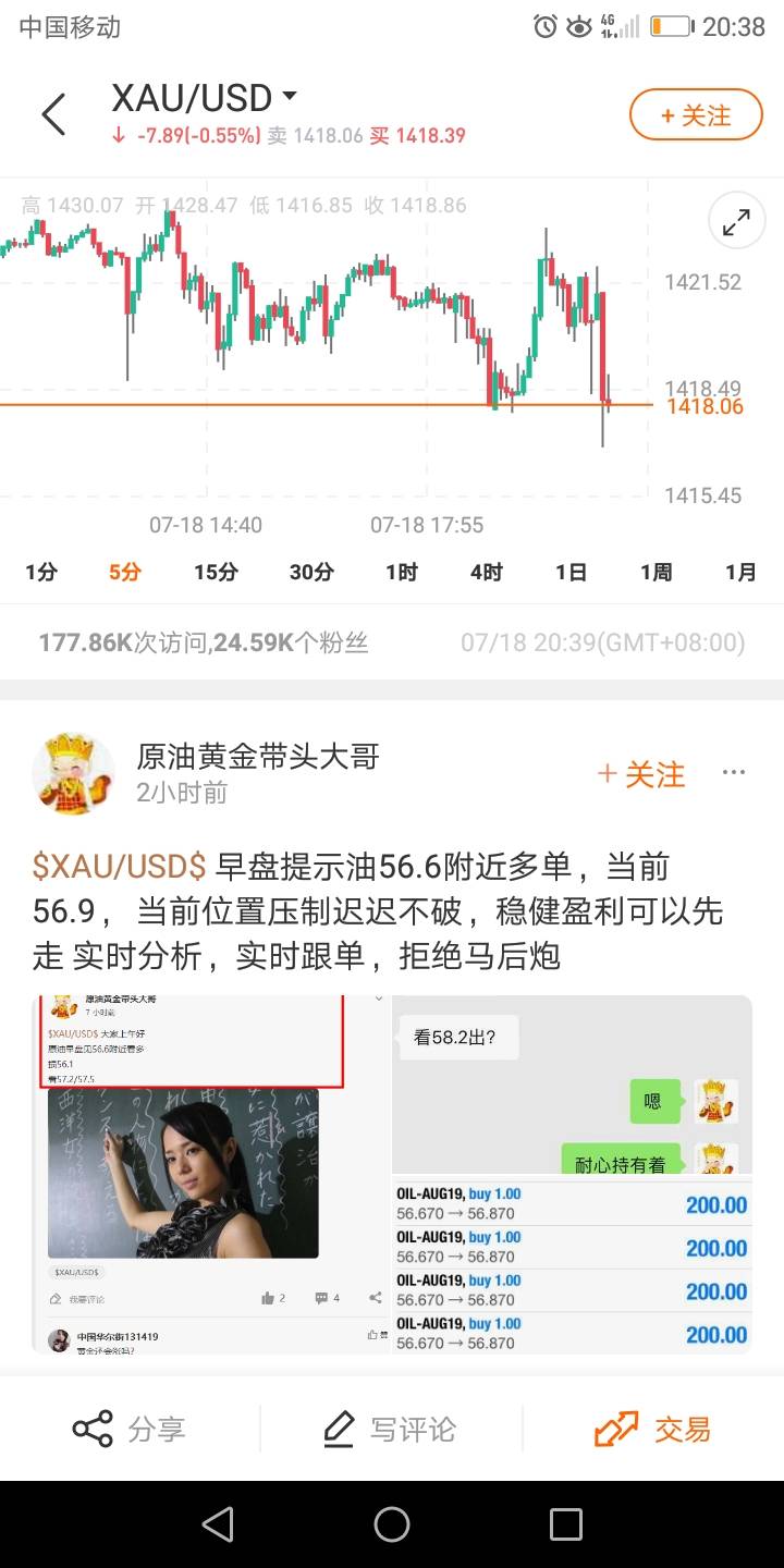 $XAU/USD$ 还能继续跌么?多单开始了吧 风险提示:本文所述仅代表作者个人观点,不代表 Followme 的官方立场。Followme 不对内容的准确性、完整性或可靠性作出任何保证,对于基于该内容所采取的任何行为,不承担任何责任,除非另有书面明确说明。