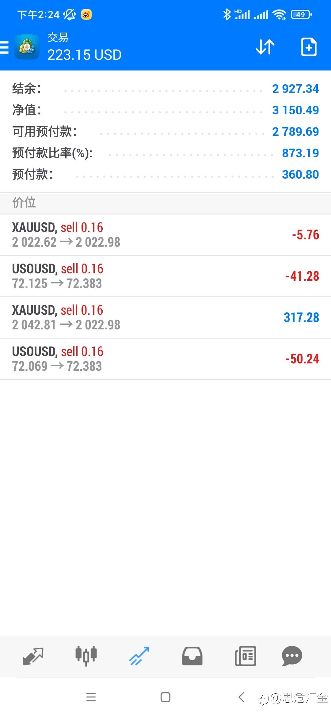现货黄金在1463附近做多,止损三美金,在1462.7附近做空,止损三美金,目标待定 风险提示:本文所述仅代表作者个人观点,不代表 Followme 的官方立场。Followme 不对内容的准确性、完整性或可靠性作出任何保证,对于基于该内容所采取的任何行为,不承担任何责任,除非另有书面明确说明。