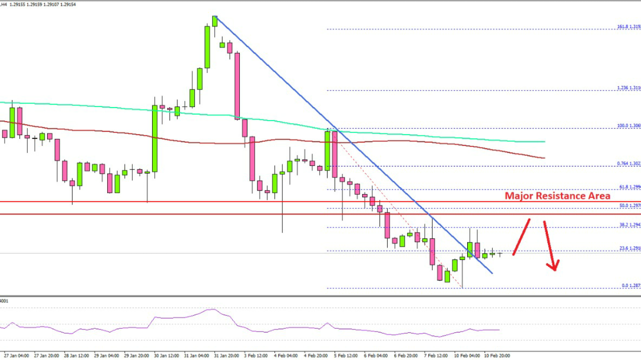 GBPUSD H4 climbed above the 23.6% Fib retracement level of the recent decline from the 1.3069 high to 1.2871 low. Moreover, there was a break above a connecting bearish trend line with resistance near 1.2920.However, the pair is likely to face a strong resistance near the 1.2970 and 1.2980 levels. Besides, the 50% Fib retracement level of the recent decline from the 1.3069 high to 1.2871 low is near 1.2970.#GBP/USD# #AllforYou#