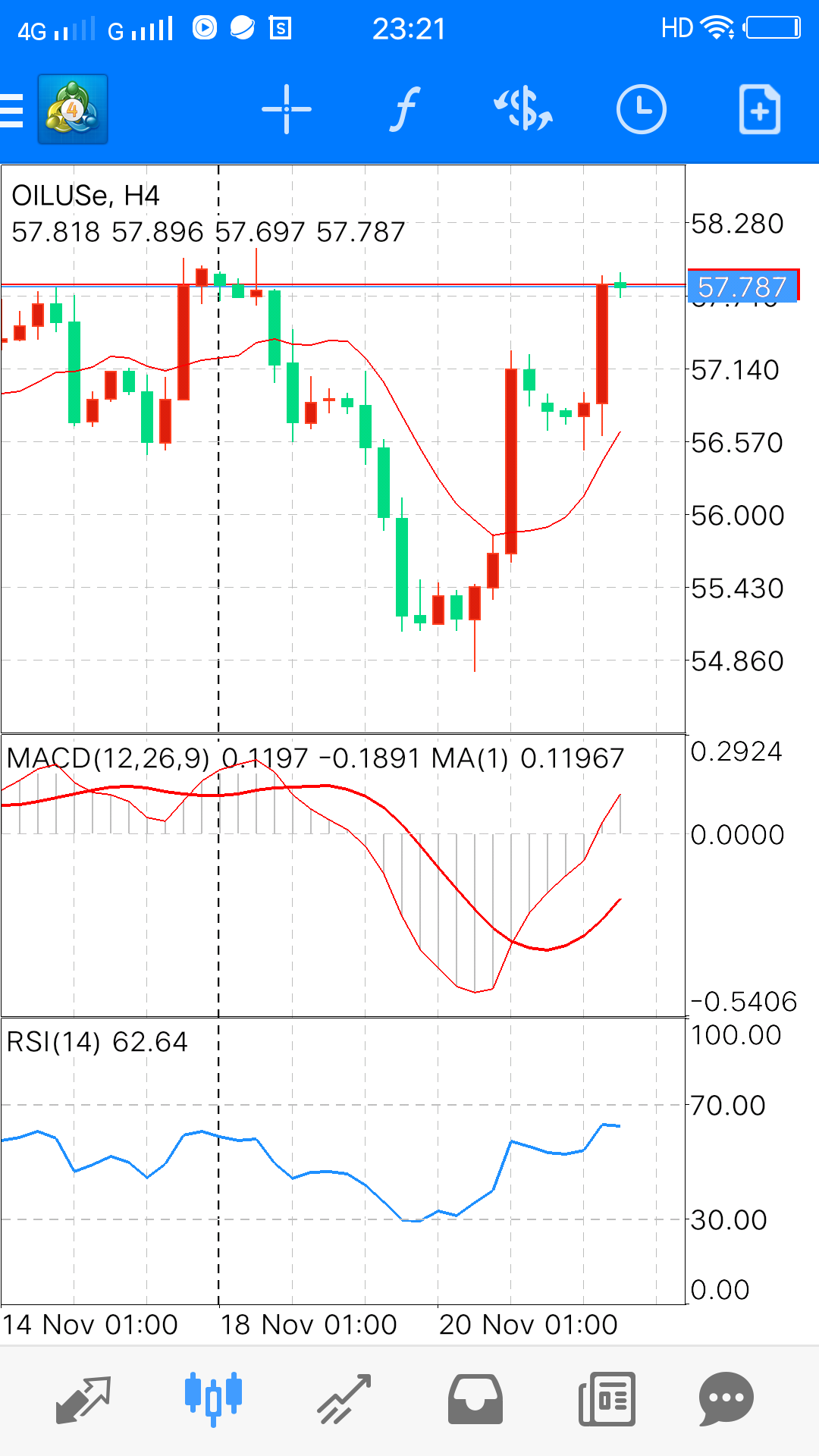黄金今天如果收盘在1475附近,那么黄金1445-1556和1525区间震荡那么周线震荡下跌将会结束,反而震荡向上测试1556从而达到年底1700 明年上个季度到达黄金历史以来最高价格1920这个价位附近短周期来说,今天日内黄金价格收盘在1470上方,那么周线价格收盘1515附近 那么大周期明确 原油在57.50价格的时候提示出现双顶 最高触及了58目前从58美元已经出现了2.2美元这个,这个还远远没有结束那么黄金在1448的时候提示了,出现底部形态。最低价格触及了1444黄金从1444目前出现了31美元的上涨这只是一个单方向的的获利价格,次趋势利润不包含在内。今天布局的原油空单已经大幅度获利, 黄金目前是保本状态稳健的,获利走或者推保护或者设置保本位置拿更大利润空间。 实时策略根据最新策略为准(大方向只是一个概述,具体以最终成交价和成交方向为准)