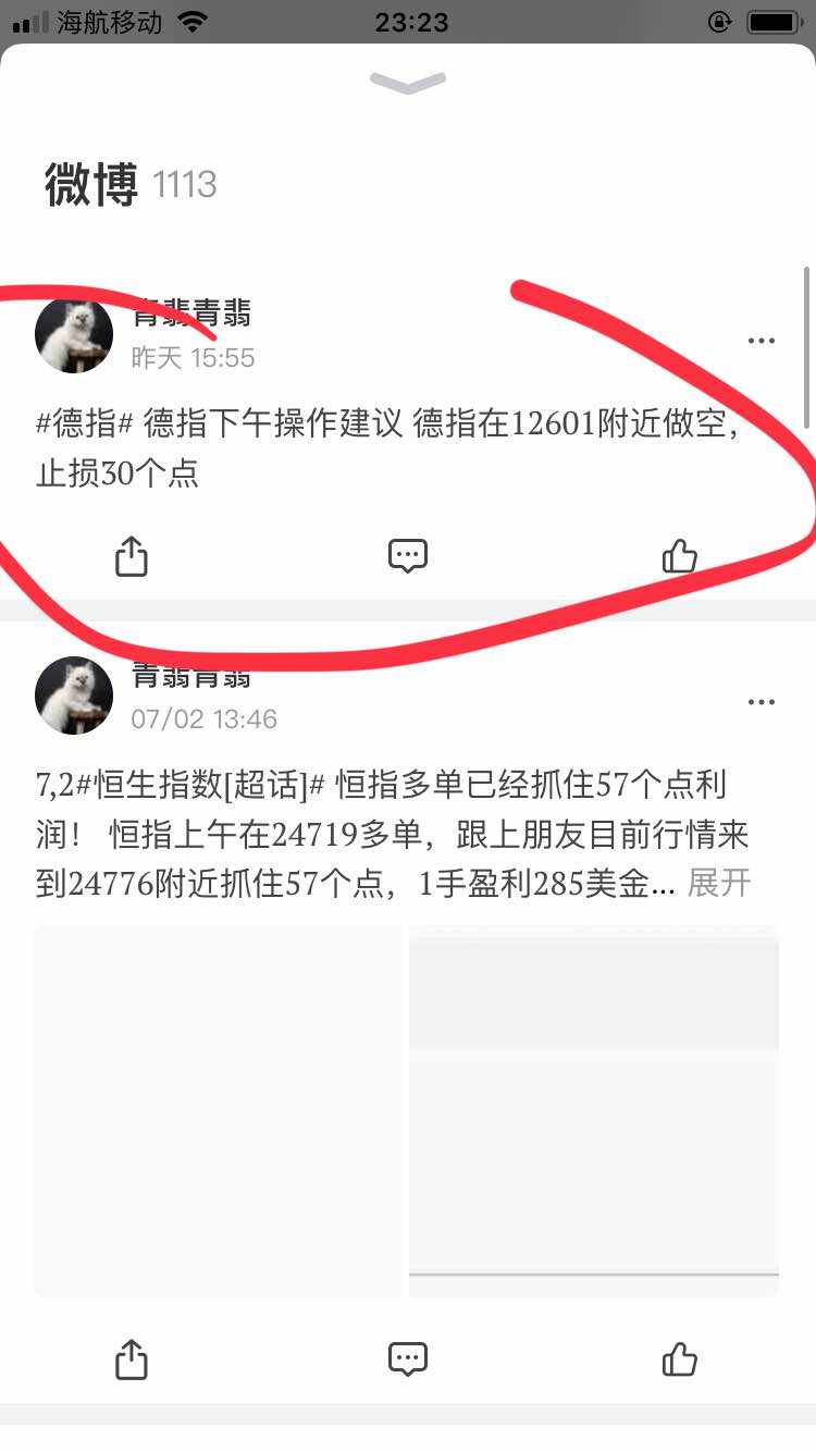11.25上午给的恒指在26890附近做空行情回顾 大家上午好,恒指完美来到26867附近,抓取了23个点,一手盈利1150港元,跟上的朋友应该都赚了吧,希望大家多关注#恒指# 风险提示:本文所述仅代表作者个人观点,不代表 Followme 的官方立场。Followme 不对内容的准确性、完整性或可靠性作出任何保证,对于基于该内容所采取的任何行为,不承担任何责任,除非另有书面明确说明。
