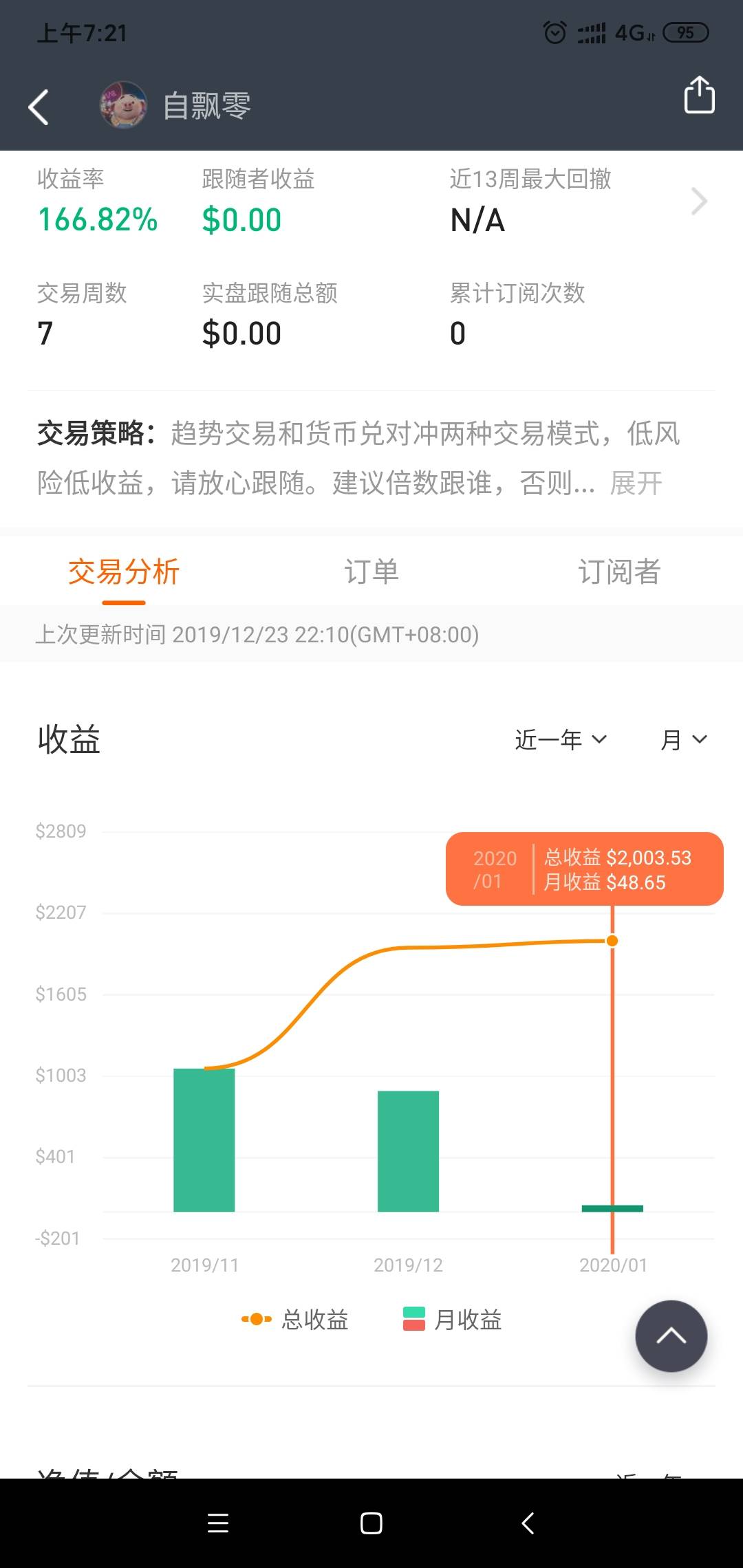 #晒单专区# 12月份两个账号已经盈利610美金,展示的账号收益也达到了120%,不求暴利,稳定盈利才是硬道理。 风险提示:本文所述仅代表作者个人观点,不代表 Followme 的官方立场。Followme 不对内容的准确性、完整性或可靠性作出任何保证,对于基于该内容所采取的任何行为,不承担任何责任,除非另有书面明确说明。