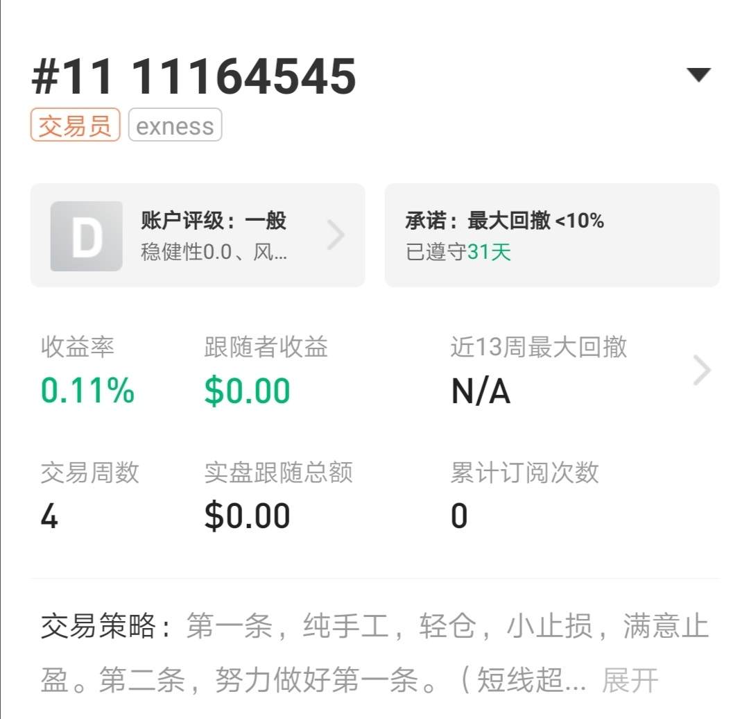 感谢大家的支持和鼓励,为迎接新年的到来,给自己一个新的开始,新注册了一个账户@鲲鹏高飞 以后希望更多的参与社区活动,不断的总结反思,在交易之路上不断前行。(这个账户以后不再使用)祝大家好运。 风险提示:本文所述仅代表作者个人观点,不代表 Followme 的官方立场。Followme 不对内容的准确性、完整性或可靠性作出任何保证,对于基于该内容所采取的任何行为,不承担任何责任,除非另有书面明确说明。