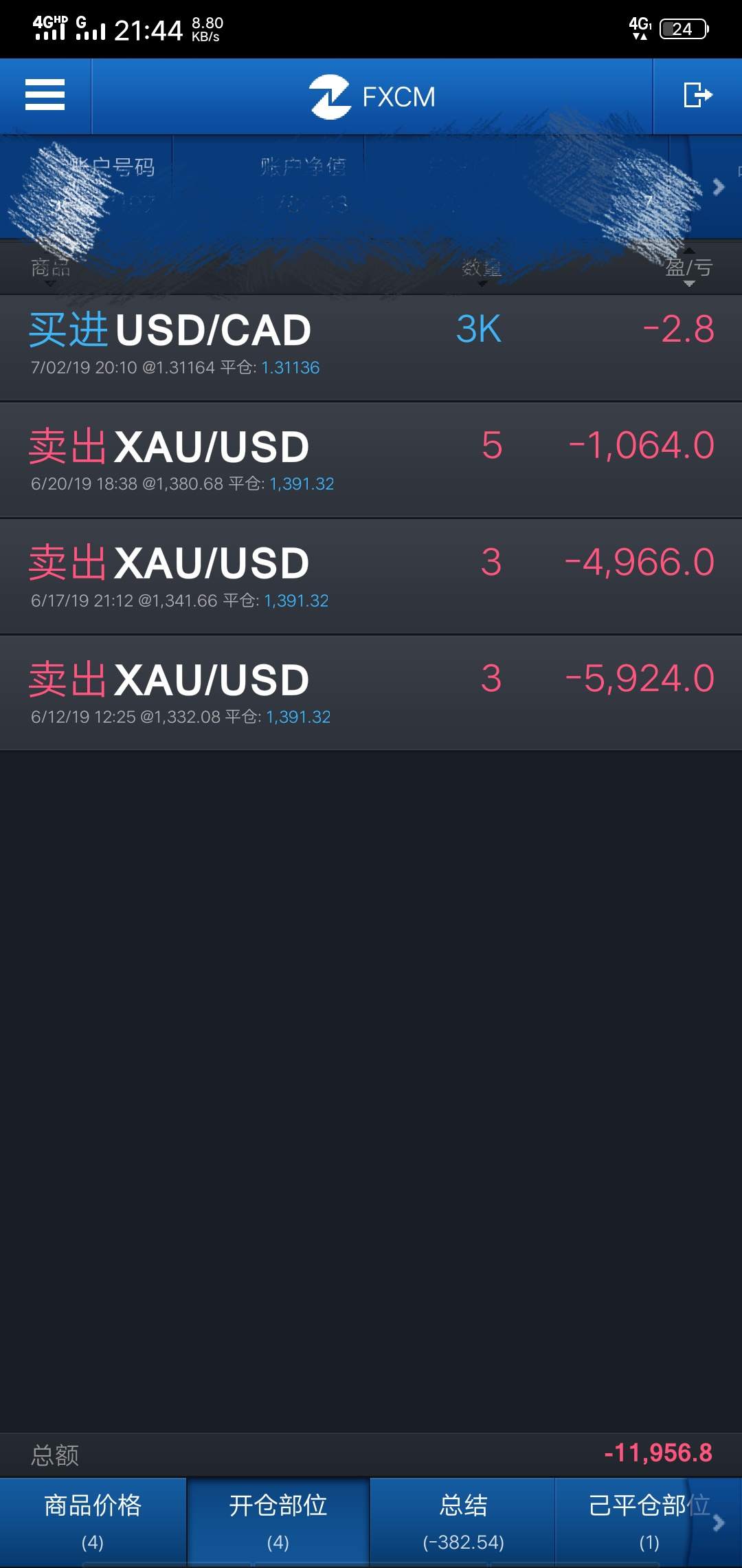 开/平仓价格