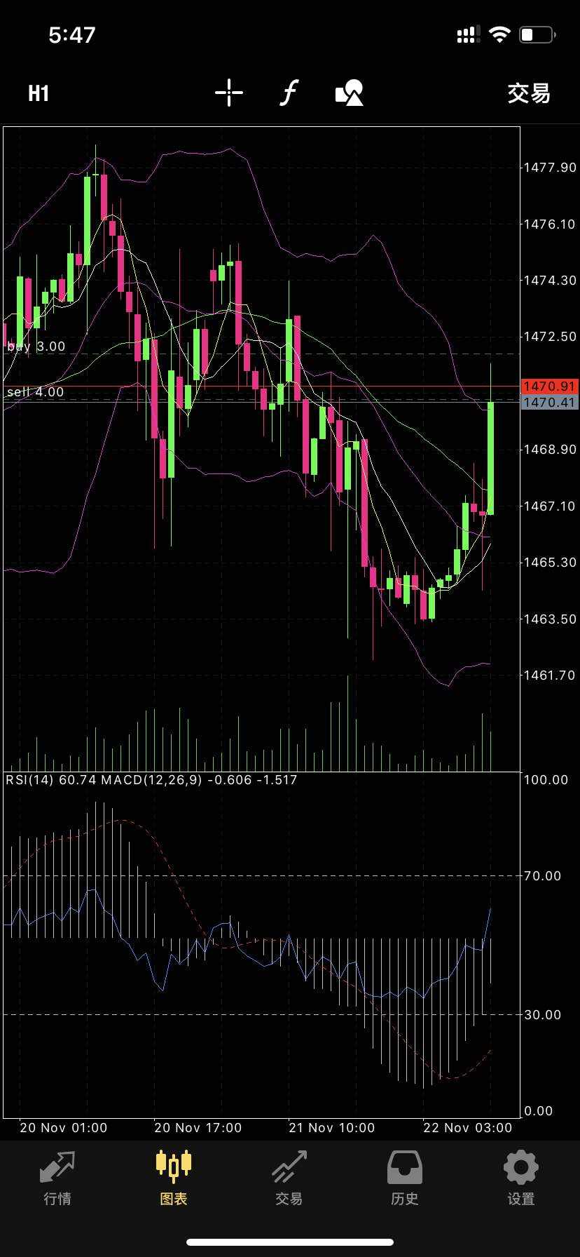1、现价黄金1559.50做空,后补1561空,止损1467,目标止盈1552,1547