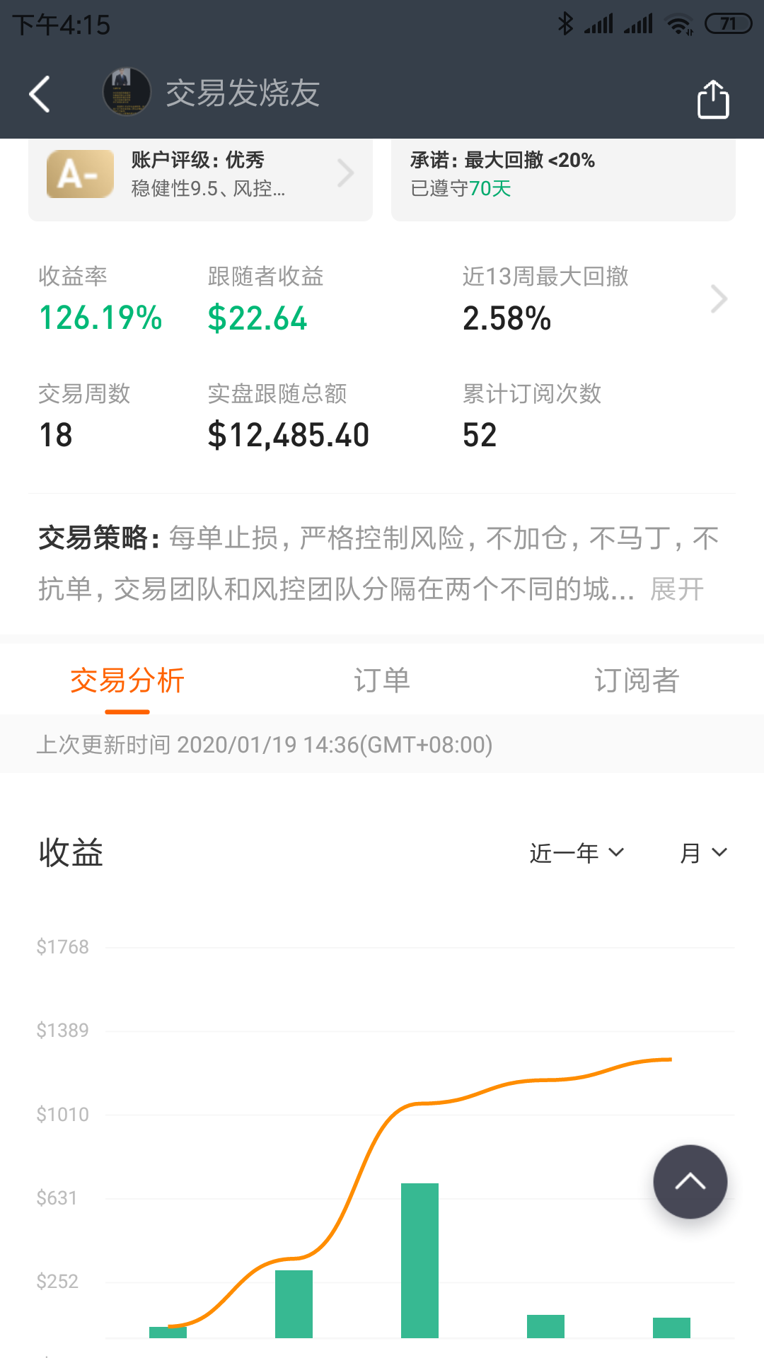 交易之道,如何稳定盈利 一个优秀的交易高手的定义应该是,能够连续多年获得稳定持续的连续复利回报,经年累月地赚钱而不是一朝暴富,常赚而不是大赚,资本市场的高额利润应来源于长期累积低风险下的持续利润的结果,职业交易者只追求最可靠的,只有业余低手才只关注利润最大化和满足于短暂的辉煌中。 这也是多数人易现辉煌,难有成就的根本原因。 重仓和频繁交易导致成绩巨幅震荡是业余低手的表现,且两者相互作用,互为因果。 坚忍,耐心,信心并顽强执着地积累成功才是职业的交易态度。 是否能明确,定量,系统地,从根本上必然地限制住你的单次和总的操作风险,是区分赢家和输家的分界点,随后才是天赋,勤奋,运气得到尽可能大的成绩,而成绩如何其中相当大地取决于市场,即“成事在天”。 至于输家再怎么辉煌都只是震荡而已,最终是逃不脱输光的命运 收起
