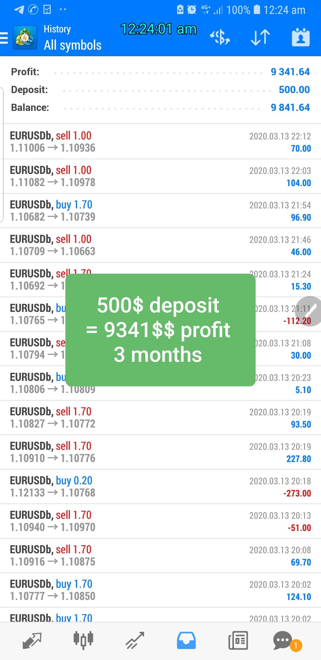 查看翻译 500$ deposit profit 3837$ in 2 months 风险提示:本文所述仅代表作者个人观点,不代表 Followme 的官方立场。Followme 不对内容的准确性、完整性或可靠性作出任何保证,对于基于该内容所采取的任何行为,不承担任何责任,除非另有书面明确说明。