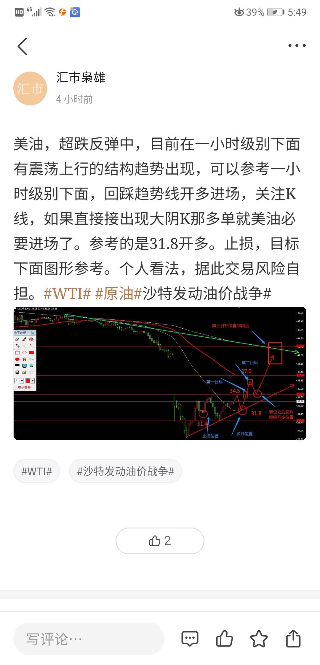 今天跟了我博文两个策略的朋友黄金有60个点了,原油也有100点了,这时候怎么做?减仓,压或者提成本损。#XAU/USD# #WTI# 风险提示:本文所述仅代表作者个人观点,不代表 Followme 的官方立场。Followme 不对内容的准确性、完整性或可靠性作出任何保证,对于基于该内容所采取的任何行为,不承担任何责任,除非另有书面明确说明。