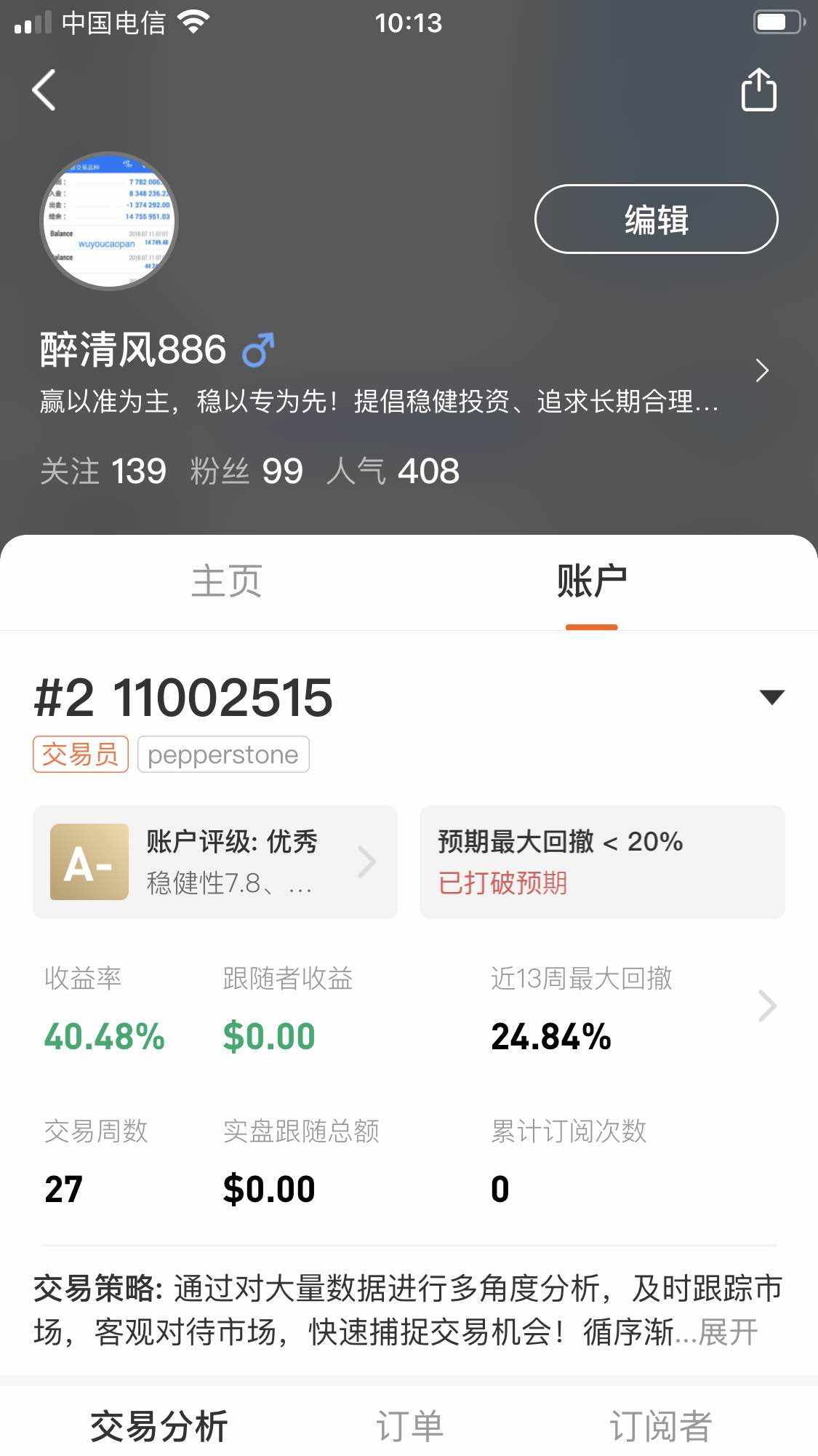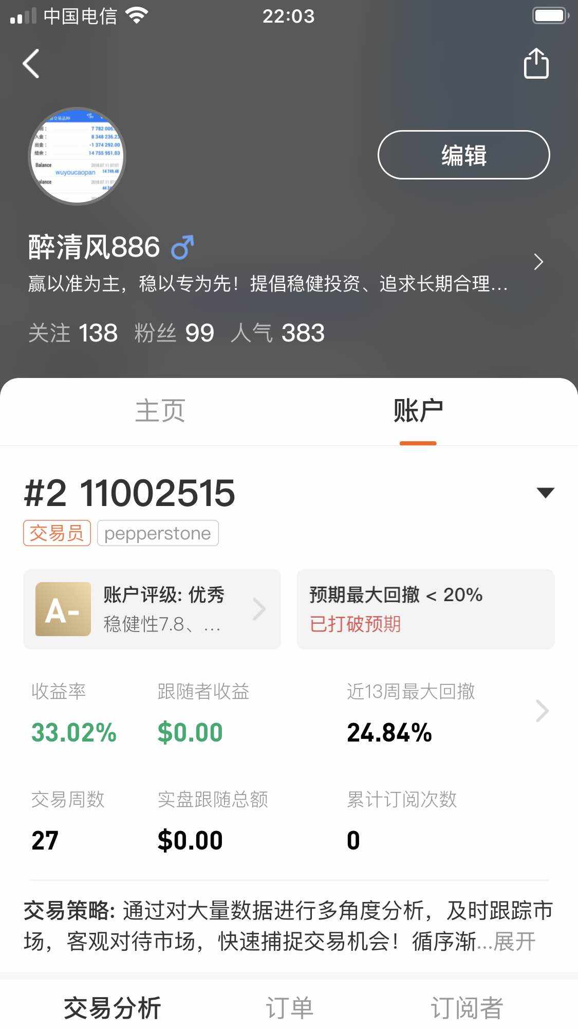 早上起来的第一件事情就是想打开账户看看,这是一种病——职业病 风险提示:本文所述仅代表作者个人观点,不代表 Followme 的官方立场。Followme 不对内容的准确性、完整性或可靠性作出任何保证,对于基于该内容所采取的任何行为,不承担任何责任,除非另有书面明确说明。