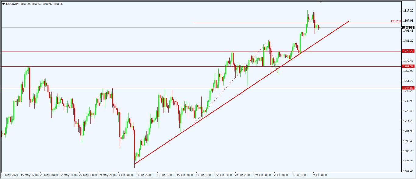 从价格结构上来看,7月1日高点1789美元一线也是一个较好的支撑位置,同时也是上升趋势线的切入点,若价格来到这一价位附近,则可能会有一个逢低做多的机会。